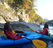 カヤックに乗って、さっそうと川を下ってみたい! だけど、いきなりカヤックに乗るのって不安。そんな方はまずはこのプログラムから。流れのおだやかな場所で練習しますので、初めての方でも安心して楽しめます。もちろん、道具はすべてレンタル込み、必要な知識も初めての方向けにやさしくレクチャーします。